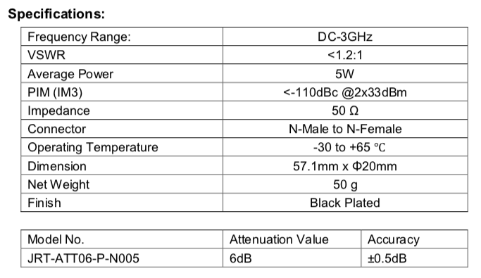 ATTENUATOR 5W N CONNECTOR – 6DB