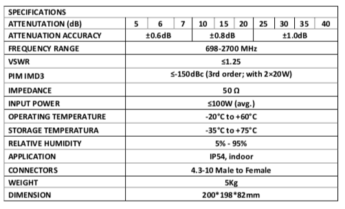 ATTENUATOR LOW PIM 100W MODEL JRT-ATxx-L100-4310MF